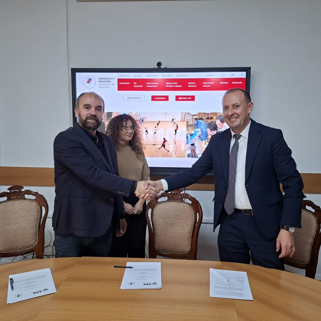 Agjencia për Parandalimin e Korrupsionit (APK) dhe Departamenti i Gazetarisë i Fakultetit të Filologjisë – Universiteti i Prishtinës, kanë nënshkruar sot një Memorandum Bashkëpunimi, i cili shënon fillimin e një partneriteti të qëndrueshëm në fushën e integritetit publik, komunikimit profesional dhe edukimit mediatik.